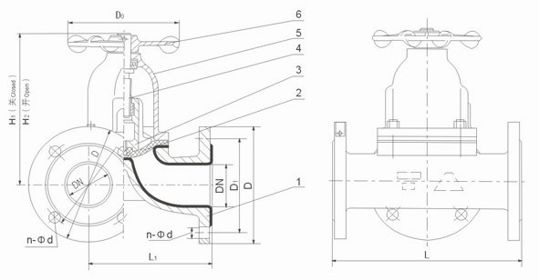 4. 閥體與蓋被中間隔膜隔開(kāi),使得隔膜上方的閥蓋,閥桿等零件不受介質(zhì)侵蝕;