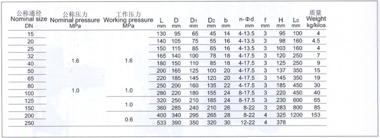 法蘭連接尺寸:GB4216