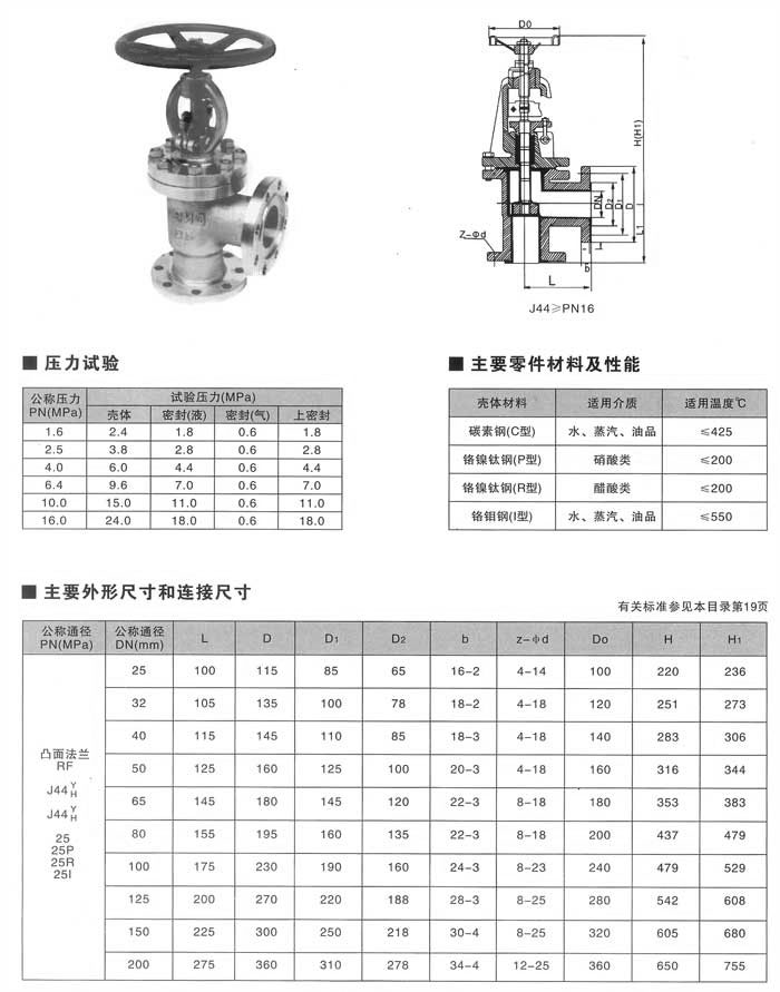 J44H角式截止閥/鑄鋼截止閥 截止閥屬于強(qiáng)制密封式閥門,所以在閥門關(guān)閉時(shí),必須向閥瓣施加壓力,以強(qiáng)制密封面不泄漏。當(dāng)介質(zhì)由閥瓣下方進(jìn)入閥門時(shí),操作力所需要克服的阻力,是閥桿和填料的摩擦力與由介質(zhì)的壓力所產(chǎn)生的推力,關(guān)閥門的力比開閥門的力大,所以閥桿的直徑要大,否則會(huì)發(fā)生閥桿頂彎的故障。近年來(lái),從自密封的閥門出現(xiàn)后,截止閥的介質(zhì)流向就改由閥瓣上方進(jìn)入閥腔,這時(shí)在介質(zhì)壓力作用下,關(guān)閥門的力小,而開閥門的力大,閥桿的直徑可以相應(yīng)地減少。同時(shí),在介質(zhì)作用下,這種形式的閥門也較嚴(yán)密。我國(guó)閥門“三化給”曾規(guī)定,截止閥的流向,一律采用自上而下。本閥要水平安裝 截止閥開啟時(shí),閥瓣的開啟高度,為公稱直徑的25%~30%時(shí),流量已達(dá)到最大,表示閥門已達(dá)全開位置。所以截止閥的全開位置,應(yīng)由閥瓣的行程來(lái)決定。J44H角式截止閥/鑄鋼截止閥