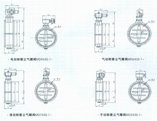MD9、7/6、3/43S-1 電(液、氣、手)動(dòng)耐磨塵氣蝶閥主要外形及連接尺寸