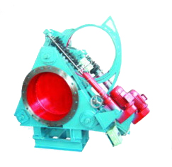 盲板閥共有三個驅動裝置,其中有兩個手動夾緊或松開裝置,一個為使閘板開通或者關閉的電動裝置,在開或關閘板中,首先松開兩個手動裝置,而后再啟動電動裝置,以達到閘板開或關的目的(特別注意:兩個手動裝置不松開,不得開啟電動裝置),閘板開或關完成后,再將兩個受動裝置夾緊,管道方能進行工作。