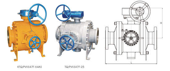 清管閥型號表示 KTQ/B PCII347F-16C-DN200-AS K-表示抗硫,非抗硫不加;T-表示天然氣專用,非天然氣不加;B-表示保溫夾套;非保溫型不加;PV-表示清管裝置;II-表示帶旁通型/I表示標準型/III表示隔離型;3-表示蝸輪傳動;4-表示法蘭連接;7-表示固定球三通式;F-表示閥座密封PTFE/N-為尼龍;16-公稱壓力;C-表示碳鋼WCB/P不銹鋼CF8,DN200-公通徑;AS-表示防靜電結構,非防靜電不加。