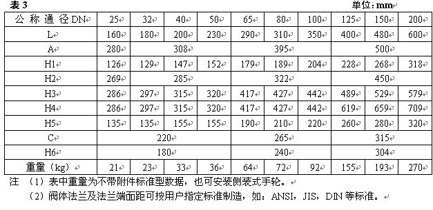 注 1)對(duì)于ZXQ(X)W型三通波紋管密封調(diào)節(jié)閥,最大允許壓差為1.0MPa,表中數(shù)據(jù)若數(shù)值小于1.0MPa則不變,若數(shù)值大于1.0MPa,則取值1.0MPa。